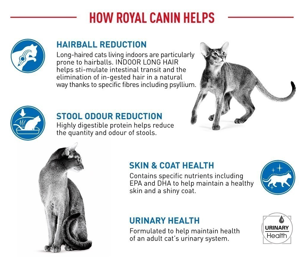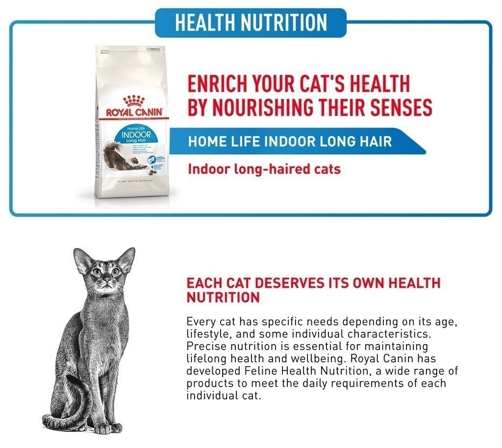 Rambut panjang pada kucing terlihat cantik namun membutuhkan banyak perawatan. Kucing dewasa dalam ruangan seperti milik anda cenderung memiliki aktivitas fisik lebih rendah daripada kucing luar ruangan, itulah mengapa makanan seimbang dan lengkap mengandung nutrien bermanfaat penting untuk kesehatan optimal. Cocok untuk kucing usia dari 1 hingga 7 tahun, ROYAL CANIN® Indoor Long Hair dry cat food diformulasikan khusus dengan mempertimbangkan seluruh kebutuhan nutrisi kucing dewasa dalam ruangan anda.