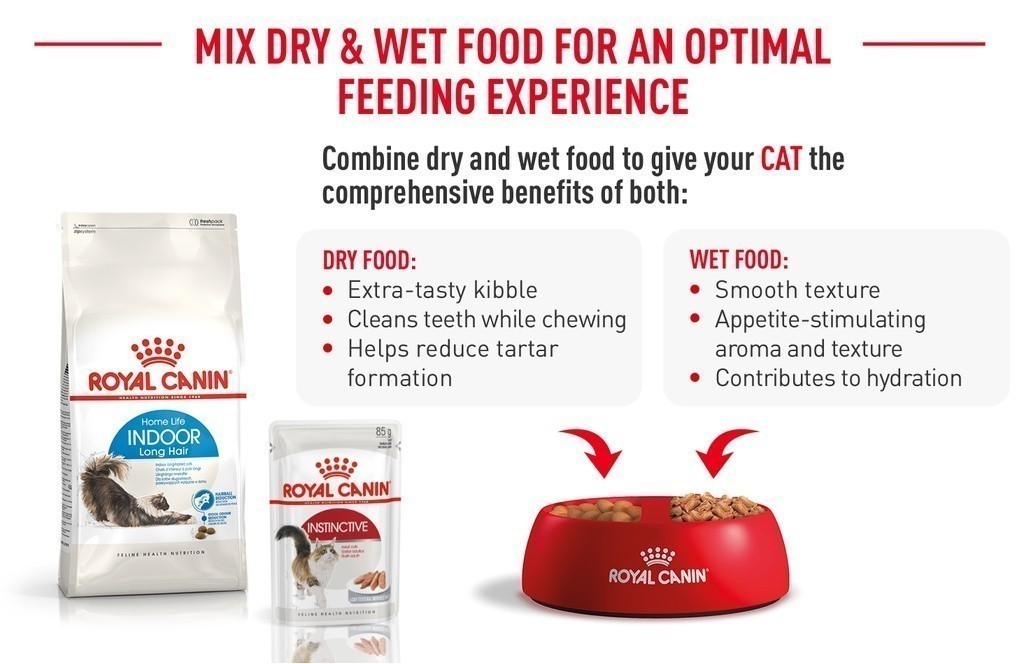 Jika anda mempertimbangkan untuk memberikan makanan campuran, mudahnya ikuti panduan pemberian makanan kami untuk memastikan kucing anda mendapatkan jumlah yang akurat dari makanan basah dan kering untuk manfaat yang optimal.