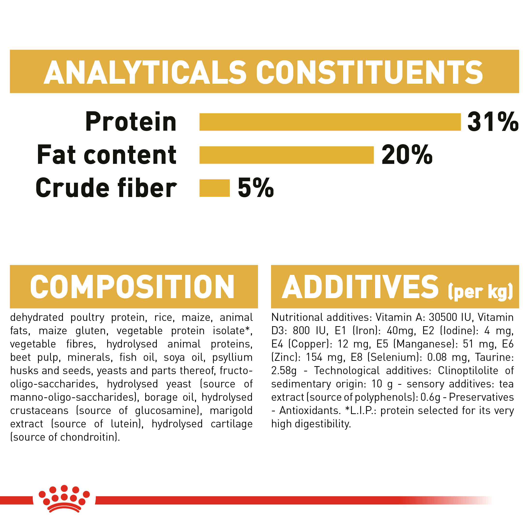 Ukuran yang besar dan perawakannya yang gagah dapat membebani sendi sepanjang hidupnya. Diformulasikan untuk mendukung tulang dan sendi yang sehat. Diperkaya dengan EPA dan DHA.