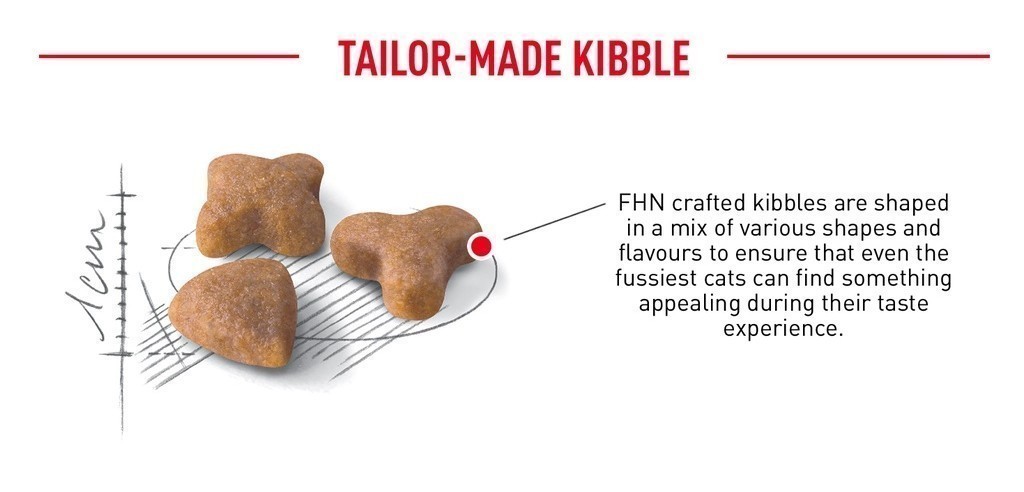 Tiga bentuk kibble yang berbeda dan formula yang menarik dengan aroma yang dipilih secara seksama untuk merangsang asupan makanan pada kucing yang sensitif.