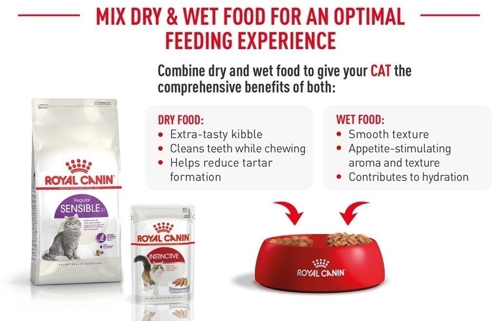 Jika anda mempertimbangkan untuk memberikan makanan campuran, mudahnya ikuti panduan pemberian makanan kami untuk memastikan kucing anda mendapatkan jumlah yang akurat dari makanan basah dan kering untuk manfaat yang optimal.